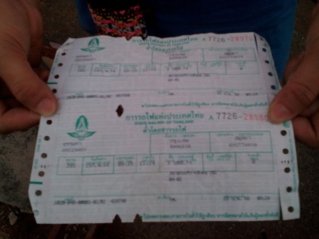 ลืมถ่ายรูปขณะซื้อตั๋ว อันนี้เลยถ่ายตอนขากลับมาแล้ว 555 ขาไปนั่งรถไฟฟรีไปอยุธยา หวานเย็นมากๆ ไปถึงก็เที่ยงวันซะแล้ว เพราะเที่ยวขาไปอยุธยา มีแต่รถไฟฟรี เท่านั้นครับ เพราะไม่มีขบวนอื่นไปแล้ว แต่ขากลับ 20 บาท กลับมาเร็ว ขาเข้า กทม มีเยอะเลย ขากลับเร็วดีครับ ชั่วโมงกว่า ก็ถึง กทม ละ เพราะไม่แวะเยอะเหมือนรถไฟฟรี 5555