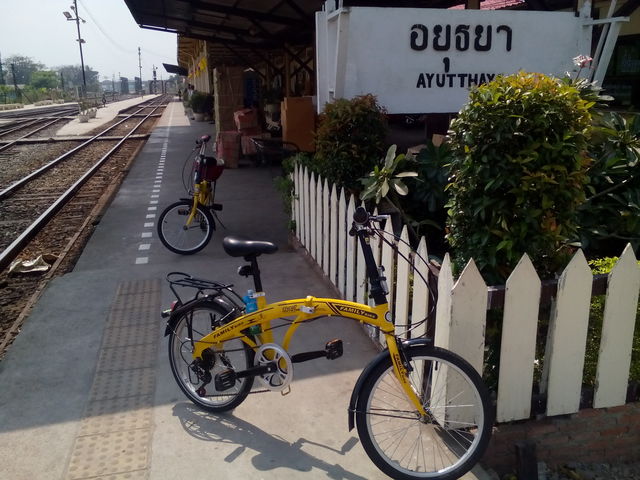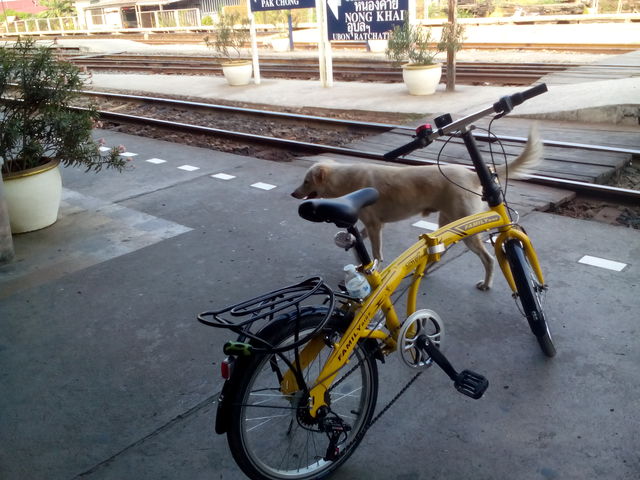ตอนเช้าไปขึ้นรถไฟที่สถานีหัวลำโพงครับ พร้อมจักรยานคู่ใจ แบกขึ้นขบวนรถไฟฟรี ตรงหัวขบวนมีที่ฝาก จักรยานได้ ไม่เสียค่าระวางซักบาท ถาม จนท ละ ถ้าพับได้ก็ไม่ต้องเสีย แต่ต้องดูแลเอง ถ้าเป็นจักรยานใหญ่ต้องเสียประมาณ 90 บาทมั้ง แบกขึ้นทุลักทุเลพอสมควร 5555