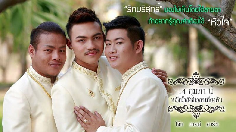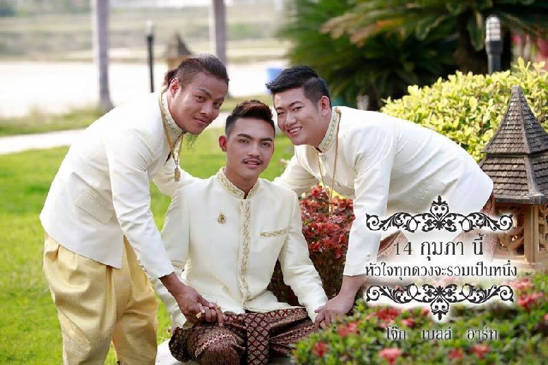 ป็นเรื่องราวที่ถูกเเชร์กระหน่ำในโลกออนไลน์ในช่วงวันวาเลนไทน์ที่ผ่านมา สำหรับภาพพรีเวดดิ้งงานเเต่งงานของชาย 3 คน โจ๊ก - เบลล์ - อาร์ท ที่จัดงานเเต่งงานขึ้นพร้อมกัน ไปเมื่อวันที่ 14 กุมภาพันธ์ที่ผ่านมา ซึ่งเเต่ละคนล้วนมีสีหน้ายิ้มแย้มเเจ่มใส ทั้งช่วงเวลาที่ถ่ายพรีเวดดิ้งหรือแม้แต่ในพิธีหลั่งน้ำสังข์ โดยมีคำพูดสุดน่าประทับใจว่า