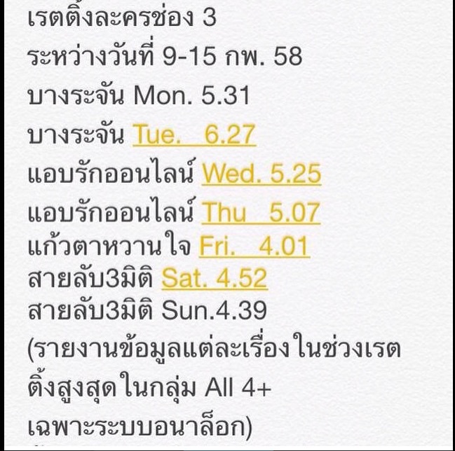 📌 เรตติ้งละคร "แสนรัก" EP.18 เรตติ้งกรุงเทพฯ 4.20 / เรตติ้ง 15+ BU 3.97 / เรตติ้งทั่วประเทศ 3.02