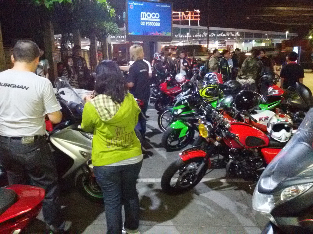 ก่อนออกเดินทาง ก็นัดพบกันที่ ปั๊ม ปตท. ใกล้ ๆ ม.กรุงเทพ วิทยาเขตรังสิต ห้ามเกิน 2 ทุ่ม เพราะต้องมีการชี้แจงก่อนออกเดินทาง และล้อหมุนจริงก็ 3 ทุ่มครับ ผมออกมาจาก อ.กระทุ่มแบน จ.สมุทรสาคร ก็เกือบ 6 โมงเย็น รถเริ่มติด แต่ก็มาถึงก่อนเวลา