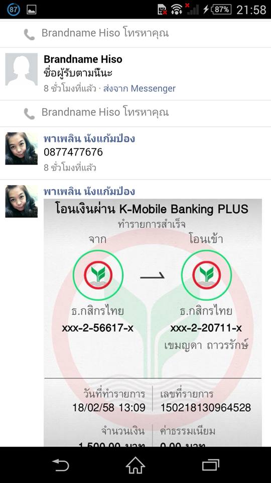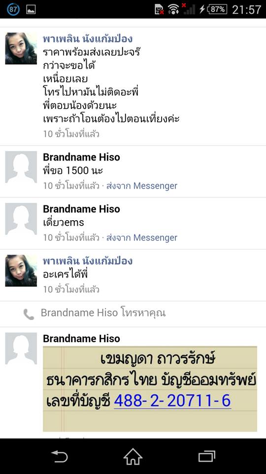 ขายถูกเลยสนใจอีตัวแม่ค้าขายก็โทรมาพูดจาดีหน้าเชื่อถือเลยตกลงชื้อกับมันตกลงที่จะโอนเงินไปก่อน 1500 บาท จากราคา 4900 บาท