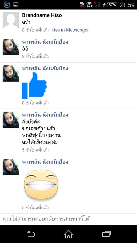 พอโอนก็แจ้งโอนปกติมันยังมาขอบคุณแตพอจะเข้าไปถามอีกทีว่าจะส่งของเมื่อไรโดนมันบล็อดเฟซเลยจ้า โทรติดต่อมันไม่ได้เลย ใช้เฟซเพื่อนเข้าไปดูเฟซมันก็เหมือนปิดใช้งานไปแล้วเพราะหาจากชื่อมันไม่เจอเลย