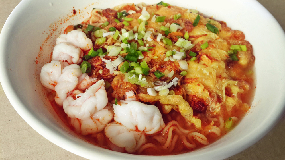 เจอมาจากร้านแถวบ้านเลยซื้อมาชิมดูครับ อร่อยดี เส้นหนึบๆ แต่ส่วนตัวยังชอบรสชาติต้มยำกุ้งของบ้านเรามากกว่า