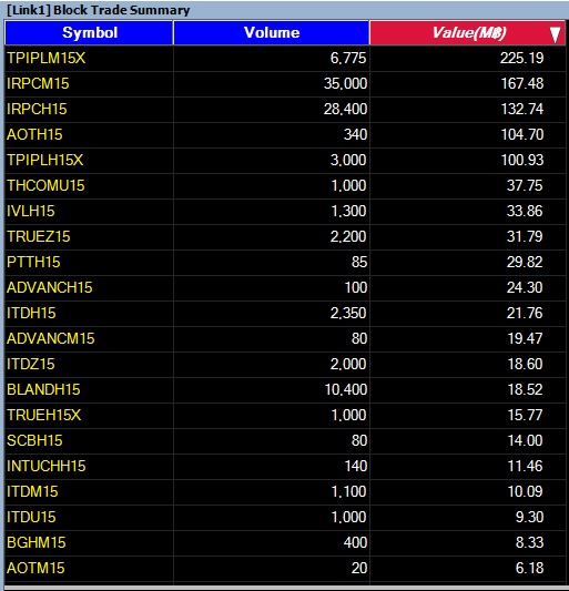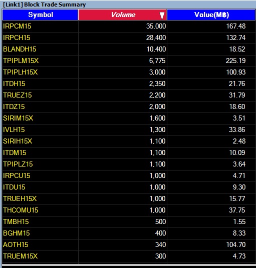รายงาน 20 อันดับ SSF ที่ทำรายการ Block Trade 19/2/58 20 อันดับแรก