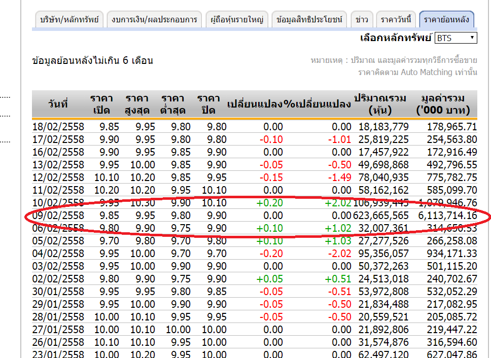 มูลค่ารวม การซื้อขาย bts วันที่09/02/2558 ที่เวป set ผมว่าเค้าใส่ตัวเลขเกินมา 1 ตัวนะ