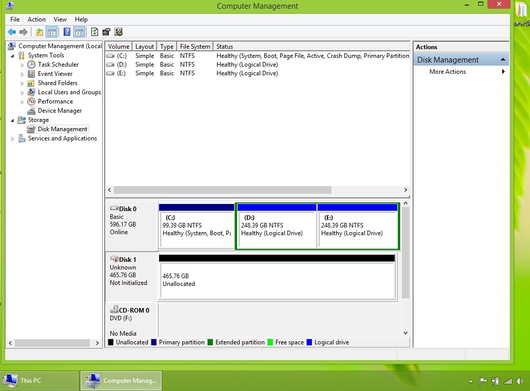 เช็คใน disk management ก็เห็นอยู่นะ ตามภาพ เลยทำให้รู้ว่า HDD ในโน้ตบุ้คเป็นแบบ dynamic ลูกที่เสียบใหม่เป็น basic 1. แก้ยังไงให้เห็นลูกที่เสียบเพิ่ม 2. dynamic กับ basic ต่างกันยังไง เราต้องแก้ลูกที