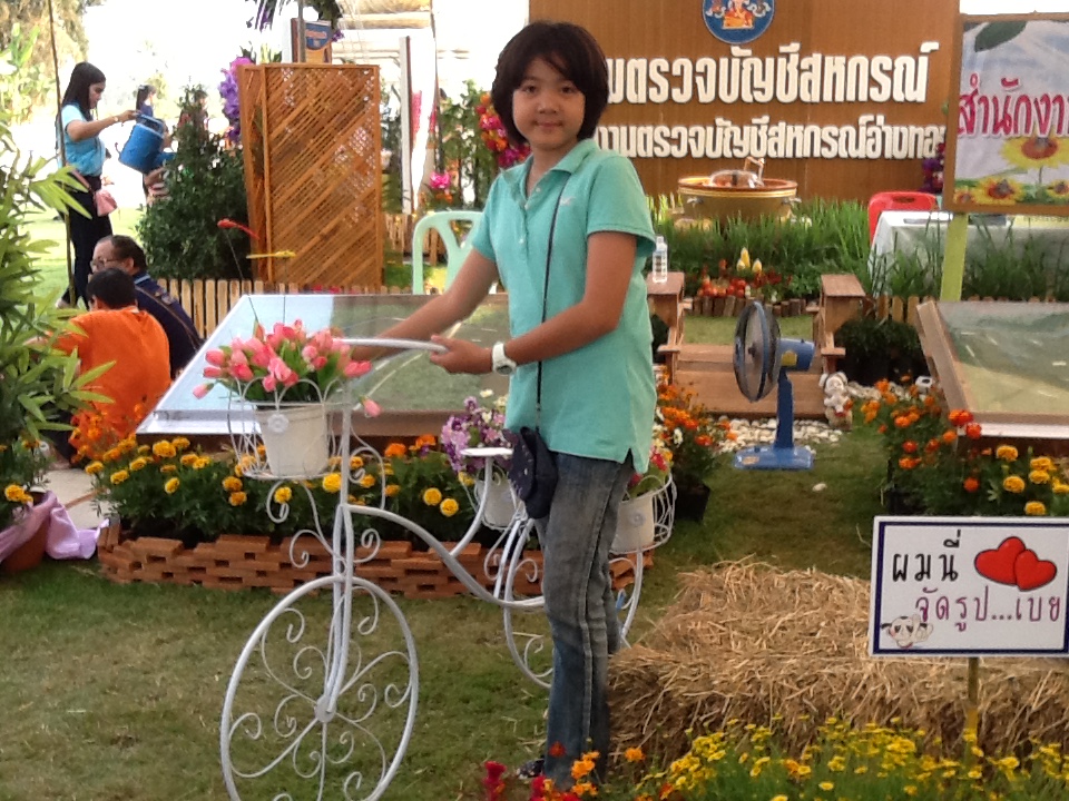 พอดีที่วัดใกล้บ้านมีการจัดงาน "เกษตรและของดีเมืองอ่างทอง" ขึ้นค่ะ เนรัญชลาเลยโดนเด็กน้อยที่บ้านรบเร้าให้พาไป
