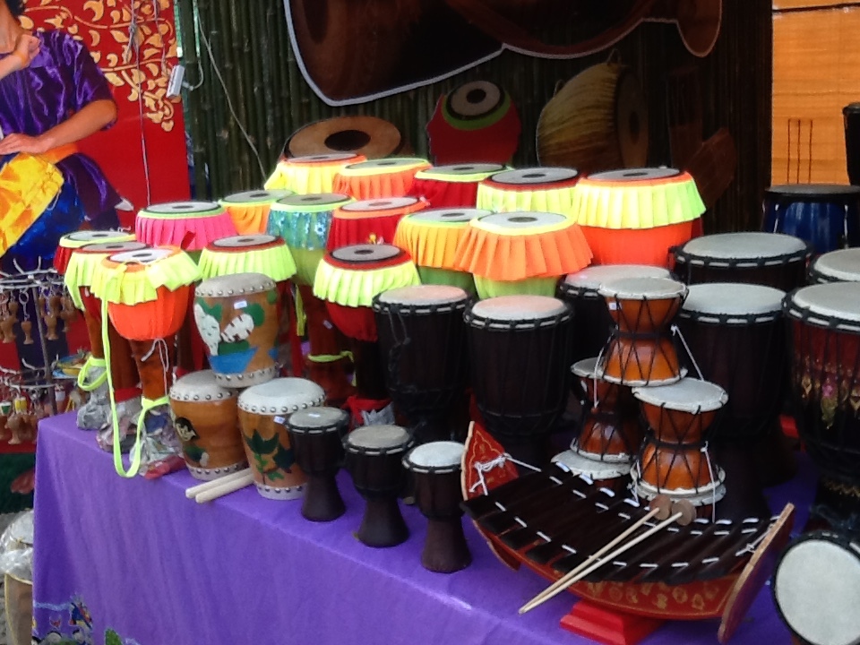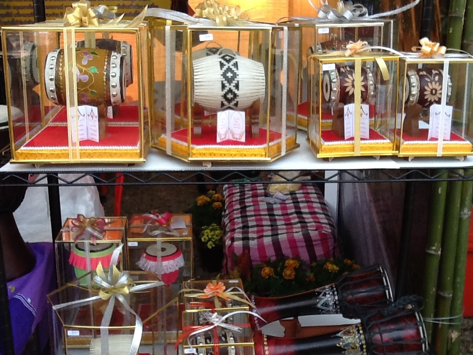 มุมสาธิตการทำกลองนานาชาติ ของหมู่บ้านทำกลอง ต.เอกราช อ.ป่าโมก จ.อ่างทอง