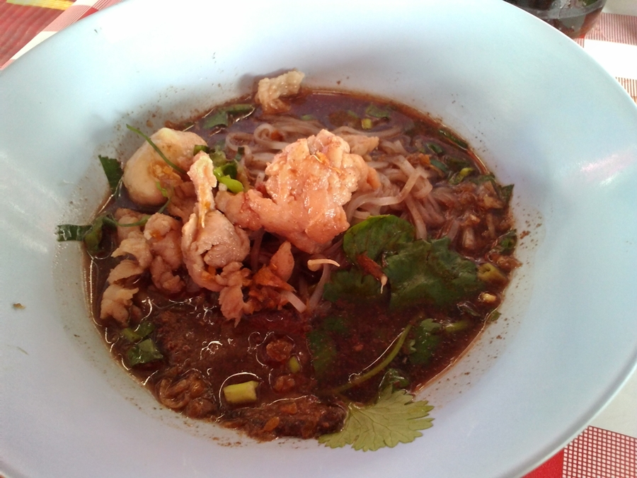เนรัญชลากับเด็กน้อยสั่งไปสามอย่าง คือข้าวขาหมู ก๋วยเตี๋ยวหมูน้ำตก และหอยทอดมานั่งแบ่งกันรับประทาน
