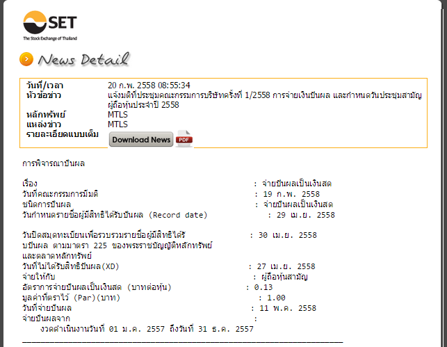 Mtls น่าเข้ายัง คับ ราคา ล่วงมาจาก45บาท