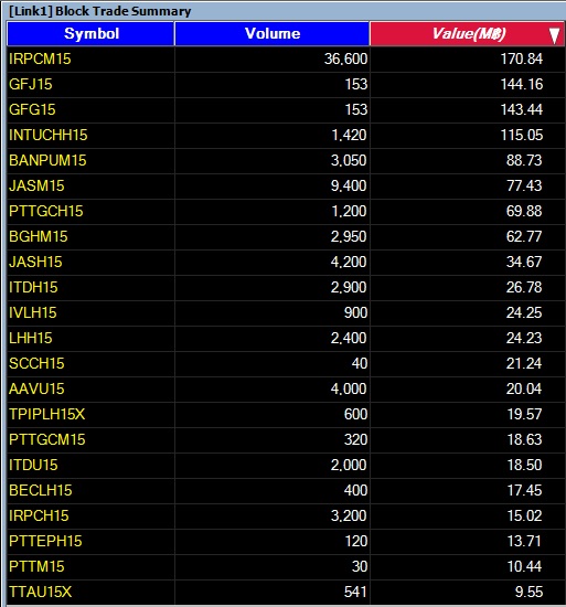 รายงาน 20 อันดับ SSF ที่ทำรายการ Block Trade 20/2/58 20 อันดับแรก