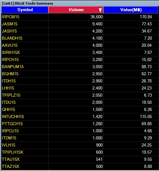 รายงาน 20 อันดับ SSF ที่ทำรายการ Block Trade 13/2/58 20 อันดับแรก