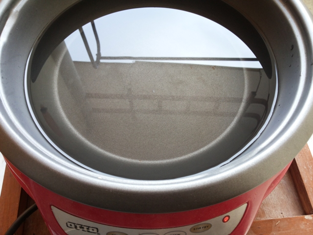 ใส่น้ำ ตั้งไฟ รอจนน้ำเริ่มเดือด (คือมันเริ่มมีไอน้ำพวยพุ่ง น้ำเริ่มปุด ปุด)