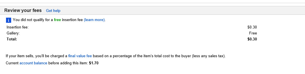 ebay มีเก็บเงินค่าลงประกาศขายด้วยเหรอครับ พอดี relist ไปหลายครั้งไม่เสีย แต่ครั้งนี้เก็บ $0.3