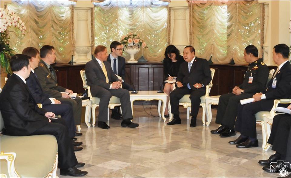 นายคีริลล์ มีไฮโลวิช บาร์สกี (H.E. Mr. Kirill Mikhailovich Barsky) เอกอัครราชทูตสหพันธรัฐรัสเซียประจำประเทศไทย เข้าเยี่ยมคารวะรองนายกรัฐมนตรี (พลเอกประวิตร วงษ์สุวรรณ) ณ ห้องรับรอง ตึกนารีสโมสร ทำเนียบรัฐบาล 20 กุมภาพันธ์ 2558 ออท.สหพันธรัฐรัสเซียประจำประเทศไทยและคณะ เข้าเยี่ยมคำนับ พล.อ.ประวิตร วงษ์สุวรรณ รองนายกรัฐมนตรีและรมว.กลาโหม ที่ ทำเนียบรัฐบาล ในโอกาสเสริมสร้างและพัฒนาความสัมพันธ์ ไทย – รัสเซีย ซึ่งจะครบรอบ 120 ปีในปี 59 พันเอก คงชีพ ตันตระวานิชย์ โฆกกลาโหม กล่าวว่า ได้มีการหารือ เพื่อกระชับความร่วมมือทางทหารและความสัมพันธ์ของทั้งสองประเทศ ด้วยการเสนอให้มีการแลกเปลี่ยนการเยือนและความร่วมมือทางการศึกษา การดูงานของนายทหารระดับต่างๆ พร้อมทั้งเชิญ พลเอก ประวิตร รมว.กลาโหม .เข้าร่วมประชุมระหว่างประเทศเกี่ยวกับการต่อต้านการก่อการร้ายและการเสริมสร้างความสัมพันธ์ระหว่างประเทศ ที่รัสเซียจะเป็นเจ้าภาพจัดขึ้น ระหว่าง 16 – 17 เม.ย.58 พร้อมกันนี้ ได้หารือถึงความร่วมมือทางการค้า การลงทุน ระหว่างกันเกี่ยวกับการสนับสนุนรับซื้อพืชผลทางการเกษตรของไทย เช่น ข้าวและยางพารา ซึ่งรัสเซียยังมีความต้องการและพร้อมให้การสนับสนุน พลเอก ประวิตร .ได้เสนอให้มีการตั้งคณะทำงานร่วมกันเพื่อหารือและพิจารณาในรายละเอียด โดยขอให้เชิญส่วนราชที่เกี่ยวข้องของทั้งสองประเทศมาร่วมหารือกันในวงกว้างให้ครอบคลุมในมิติต่างๆและดำเนินการในรูปแบบ รัฐบาลต่อรัฐบาล ( G to G ) เพื่อความโปร่งใสและเป็นประโยชน์กับทั้งสองประเทศร่วมกัน พลเอก ประวิตร ได้ขอขอบคุณรัสเซีย ที่มีความเข้าใจสถานการณ์ของประเทศไทยและสนับสนุนความพยายามของรัฐบาลในการดำเนินการตาม Road Map เพื่อสร้างความปรองดองของคนในชาติและการปฏิรูปประเทศ ในการกลับสู่การปกครองระบอบประชาธิปไตยโดยเร็ว ขอขอบคุณออท.รัสเซีย ที่จะเสนอให้รัฐบาลรัสเซีย สนับสนุนและกระตุ้นประชาชนชาวรัสเซียให้มาท่องเที่ยวไทยมากขึ้น