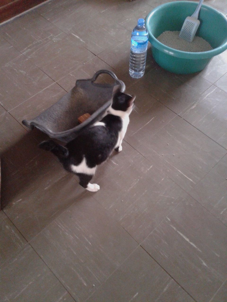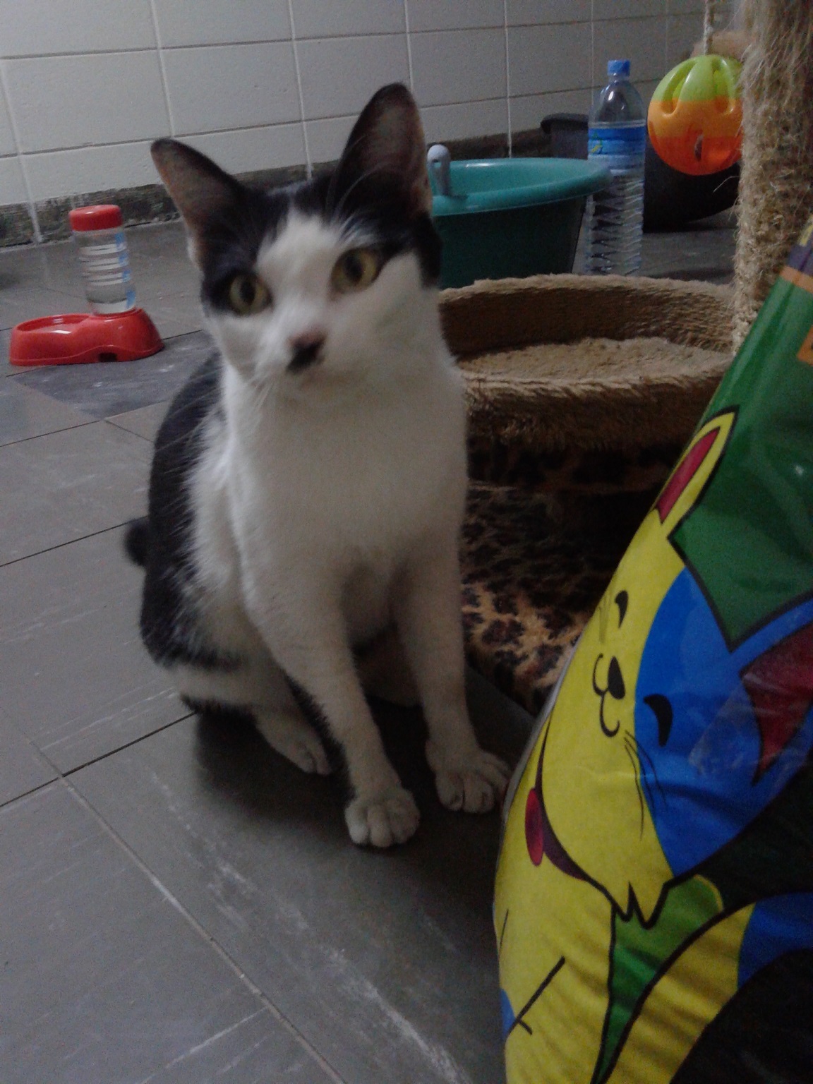 น้องพลอยอายุประมาณ4เดือนเพศเมีย หางยาวตรง เป็นแมวจรจัดที่มาขออาหารที่บ้านกินบ่อยๆ น้องพลอยนิสัยขี้กลัว ไม่เชื่อง ตอนจะจับทำหมันผมต้องเอาอาหารล่อในกล่อง เวลาน้องเข้ามากินอาหารในกล่องผมก็รีบปิดฝากล่องทั