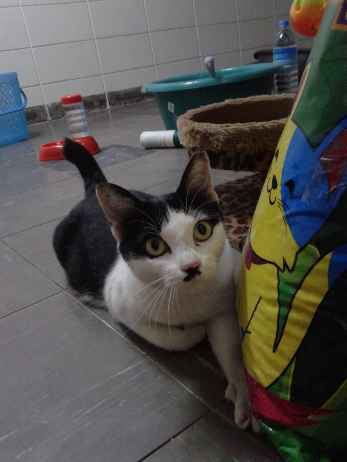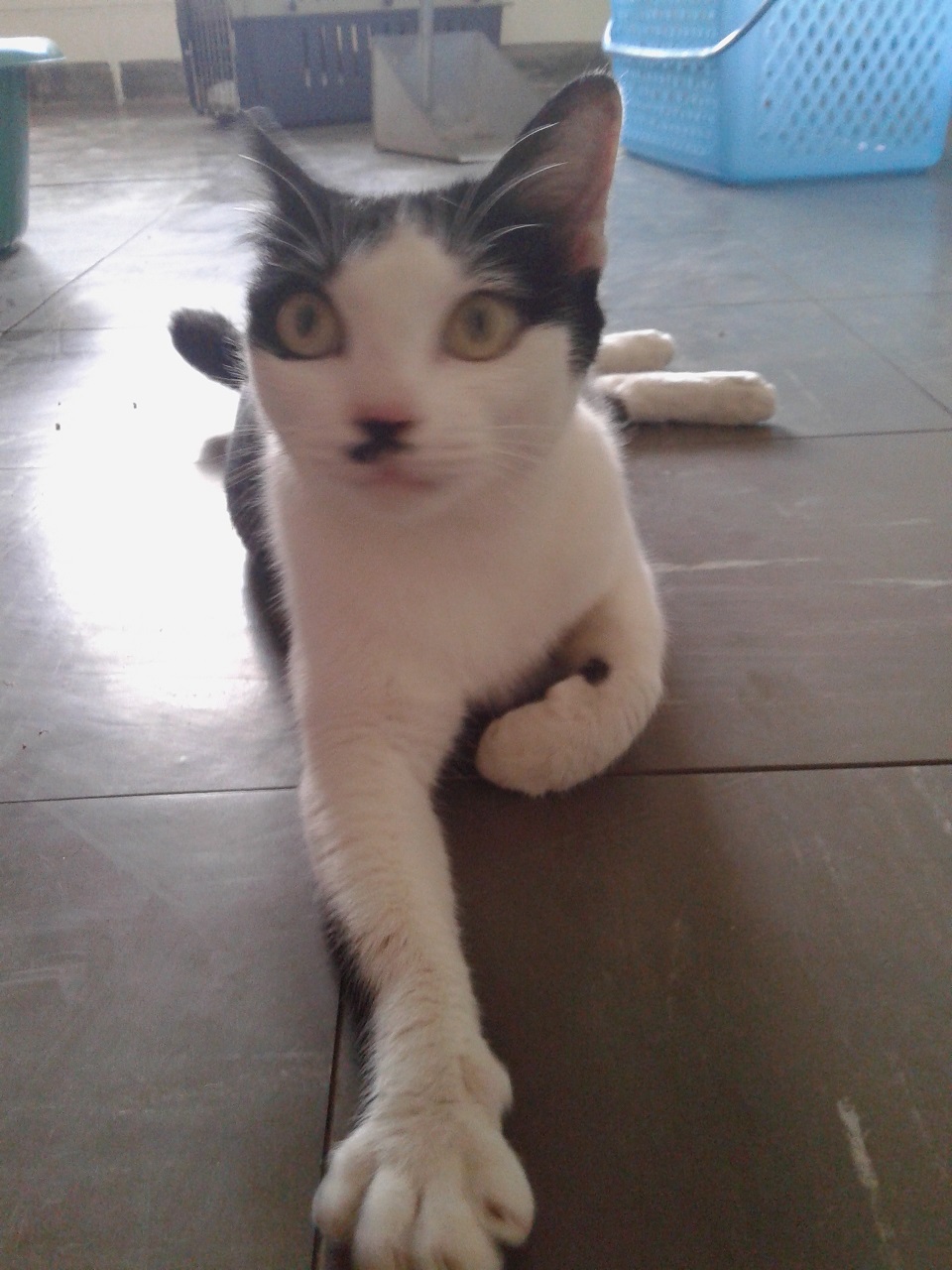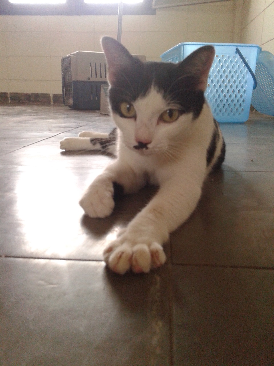 น้องเป็นแมวจรค่ะ เป็นลูกแมวเพศเมีย ตอนประมาณกลางเดือนมีนาคมที่ผ่าน น้องถูกหมากัดค่ะ เลยต้องผ่าตัดใหญ่เพราะในปอดข้างนึงมีหนองเต็มปอด ผ่าตัดไส้เลื่อนกับกระบังลมด้วยค่ะ อยู่รพ.เป็นเดือนกว่าจะได้รับกลับมา