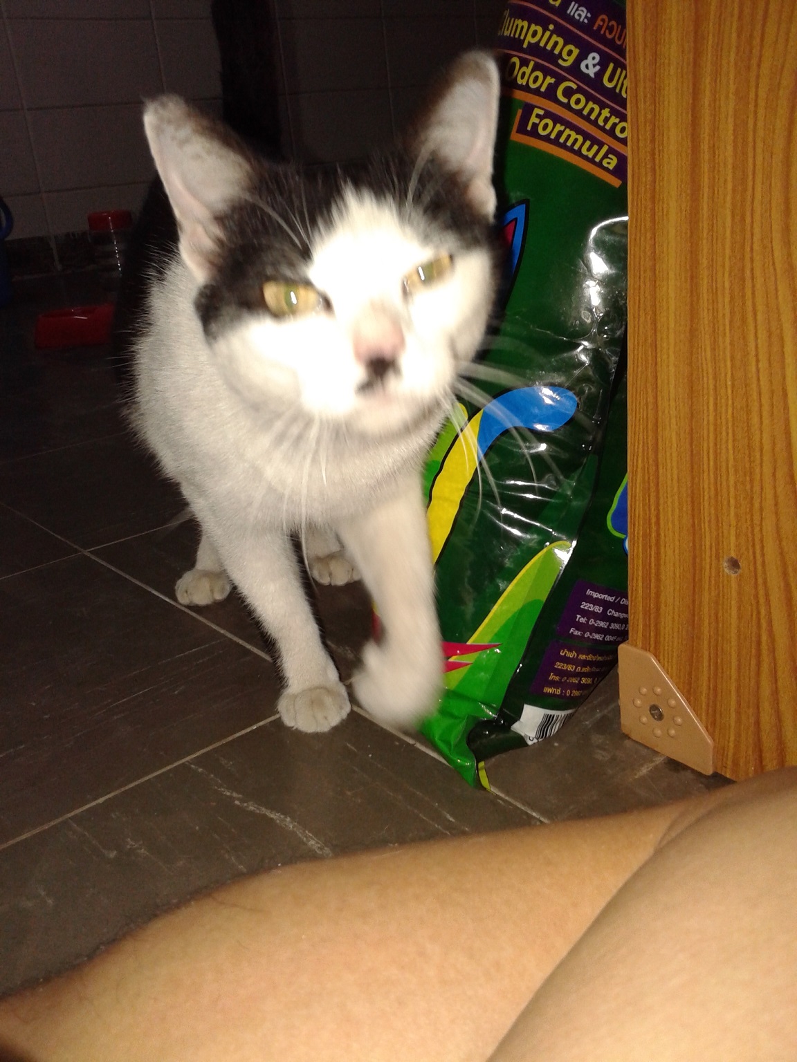 จากหัวข้อนี้นะครับ http://pantip.com/topic/35588657 ยังไม่มีใครขอติดต่ออุปการะน้องพลอยเลยครับ และหลังจากนั้นก็ได้มีแมวจรจัดอีกตัวนึงหลงมาหน้าบ้าน นางมาเดินถูแข้งถูขาอยู่อย่างนั้น นางเชื่องมากๆผมก็เลยพ