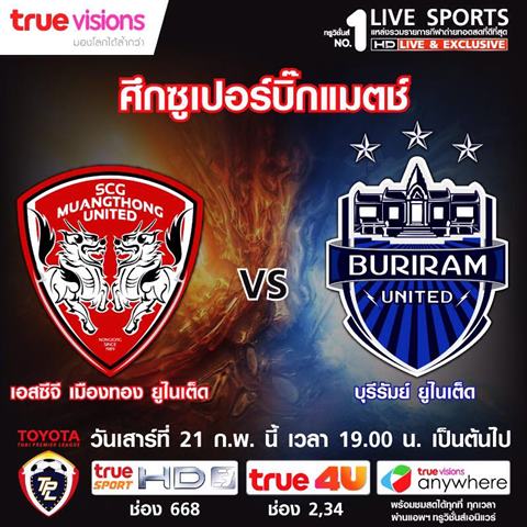 [ True4u ดิจิตอล ฟรีทีวี ] วันนี้ ถ่ายทอดสด เอสซีจี เมืองทอง ยูไนเต็ด พบ บุรีรัมย์ ยูไนเต็ด 19.00 น.