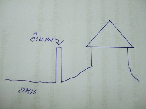 ปลายกำแพงอยู่ในระดับกลางของฝาบ้าน(ภาพไม่ตรงนัก)โดยมีรั้วปูนอยู่ตรงกลาง จะมีมลภาวะทางเสียง