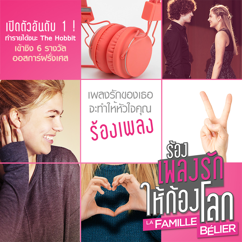 "La famille Belier ร้องเพลงรักให้ก้องโลก" หนังตลกครอบครัวเล่าเรื่องของเด็กสาวเสียงดีที่มีพ่อและแม่เป็นคนหูหนวก แต่เธอกลับมีความสามารถพิเศษในการร้องเพลง และเพื่อจะทำฝันให้เป็นจริง เธอต้องเอาชนะทั้งอุปสรรคภายนอก พร้อมกับทำความเข้าใจกับพ่อแม่ในเวลาเดียวกัน