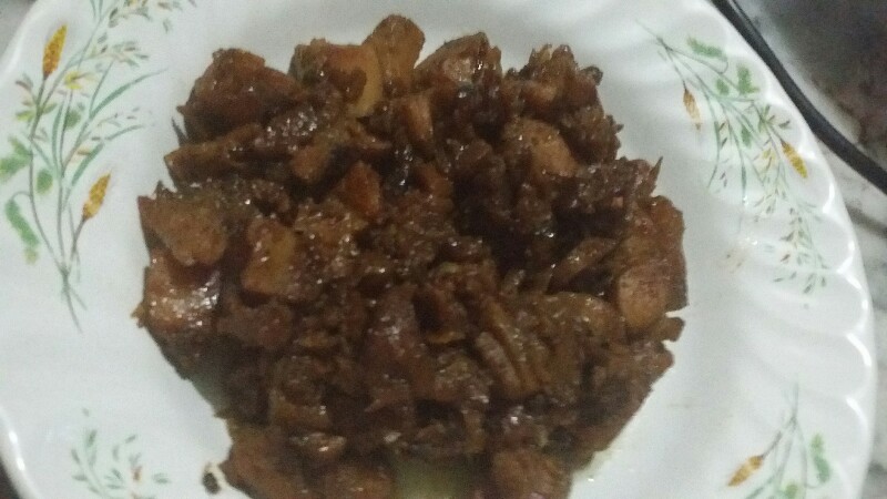 ไกผัดหวาน เอาไก่ที่ไหว้มารวน ใส่น้ำมันหอยกะน้ำตาล