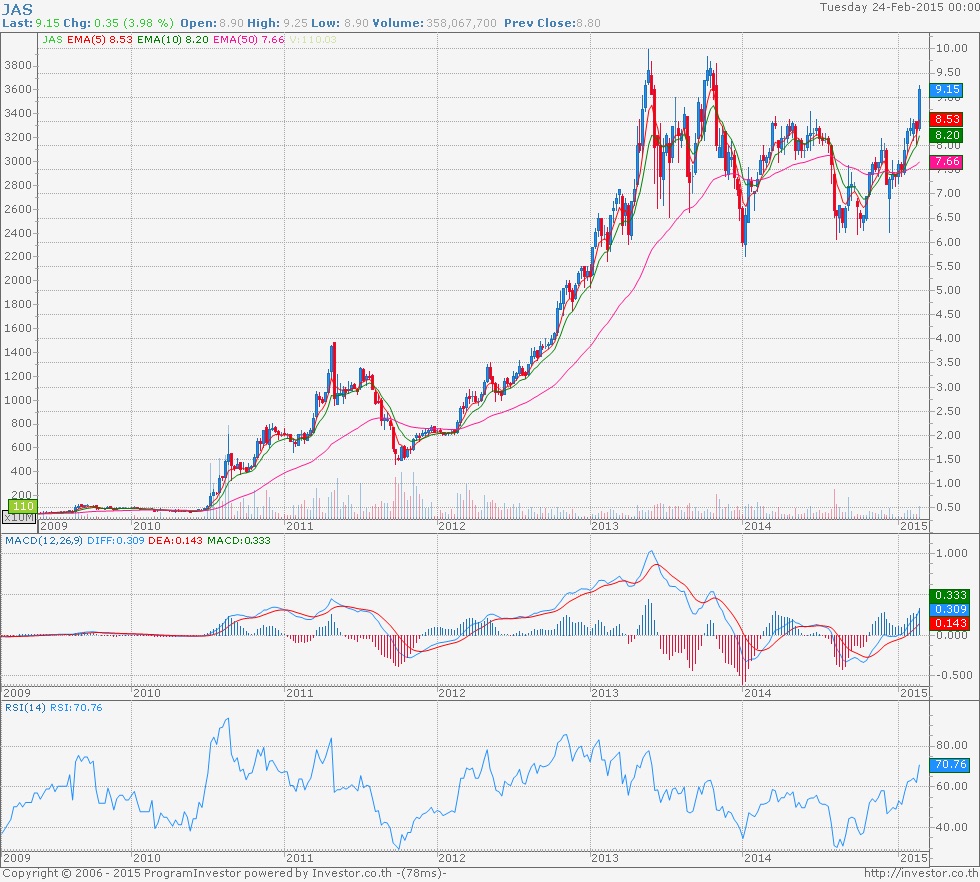 Jas บางคน คิดว่าเกินพื้นฐาน แต่เปล่าเลย jasมีการเข้า set 50จึงเกินราคาขึ้นมา ประกอบกับลุ้นได้งาน เดินโครงข่าย 3จีของบริษัทลูก jts เมื่อมองไปที่รายได้รวมมากกว่าปีที่แล้วไม่มากแต่กำไร สุทธิ เพิ่ม จากปี