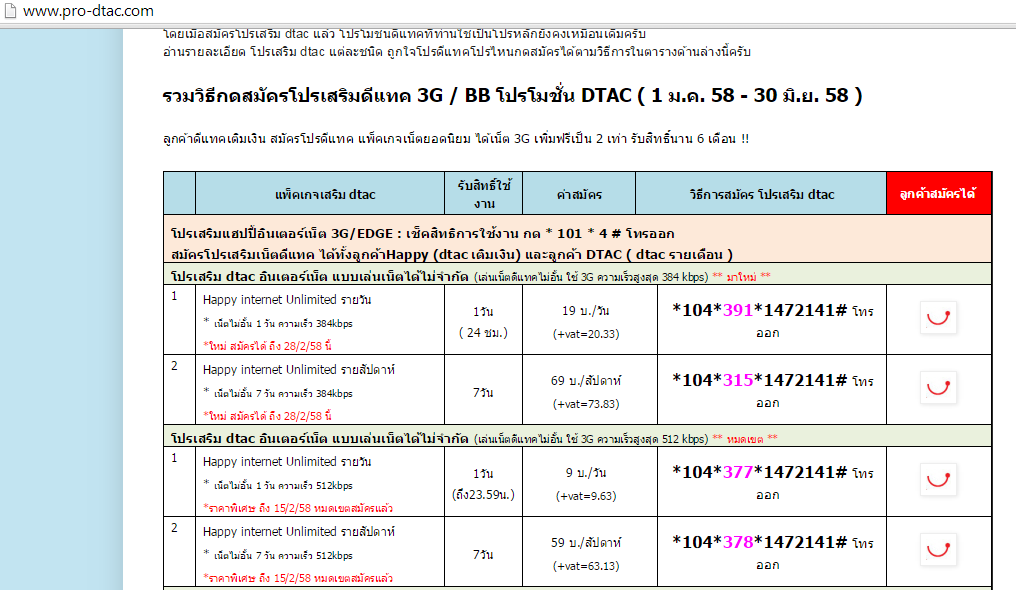 Happy internet ไม่อั้น ตี 5 – 5 โมงเย็น ความเร็วสูงสุด 384 kbps 7 บาท / วัน ก็จะหมด 28/02/2558 นี้แล้ว
