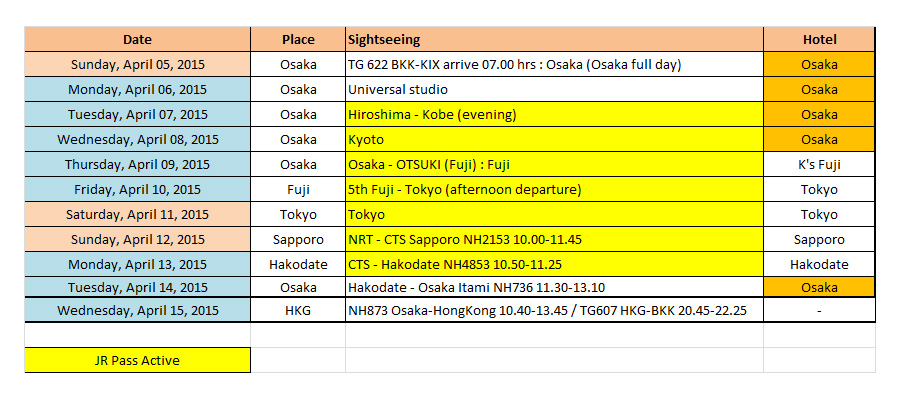 แพลนการเดินทางโดยรวมทั้งทริปครับ