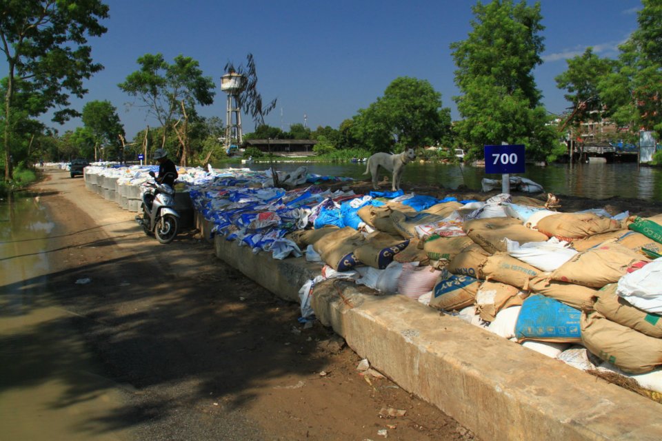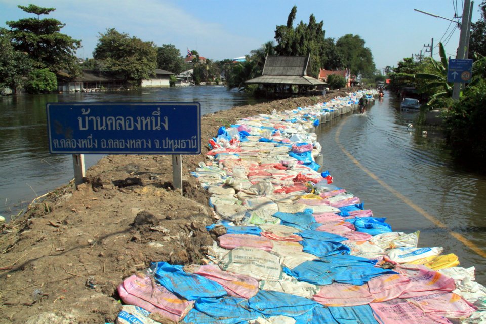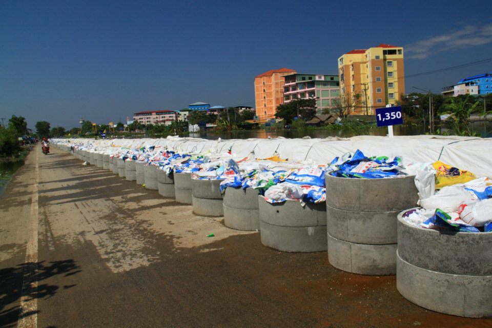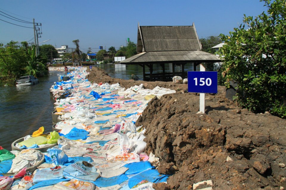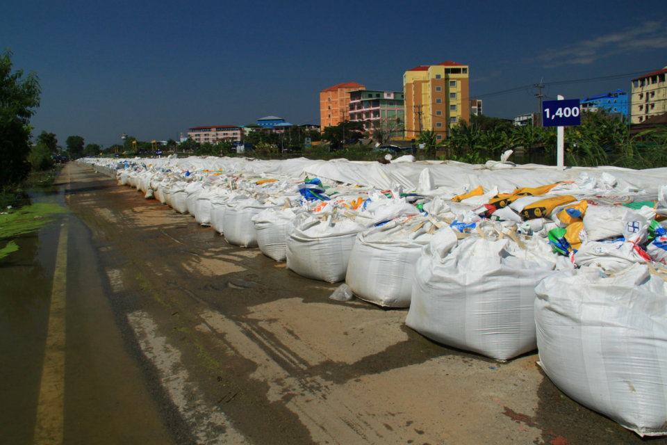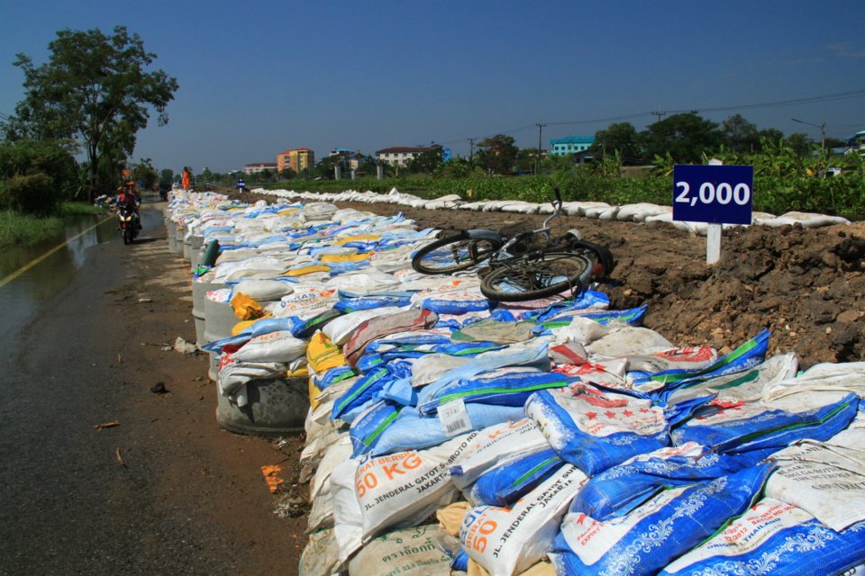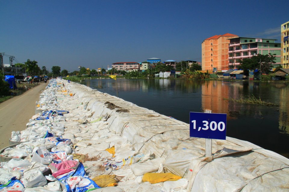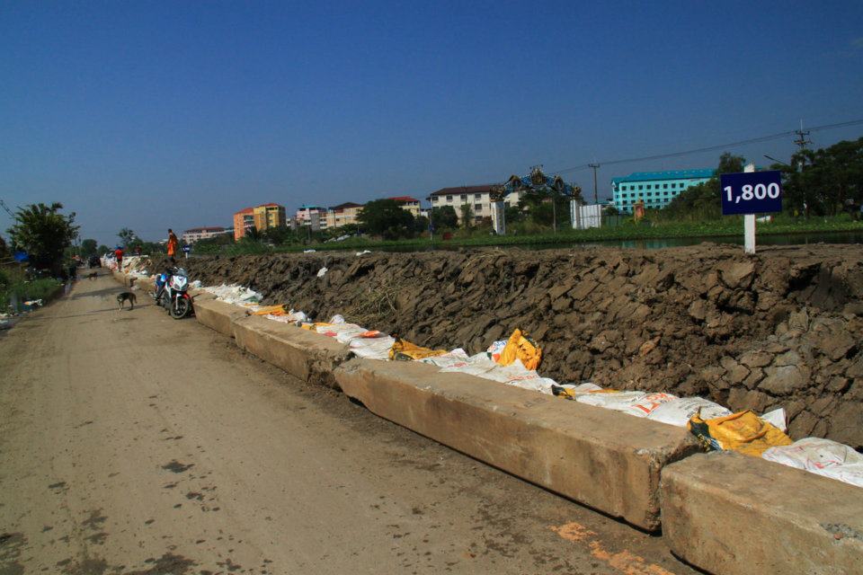 เก็บตก ภาพแนวกระสอบทรายกั้นมวลน้ำยาวหลาย กม. ที่คลองระพีพัฒน์