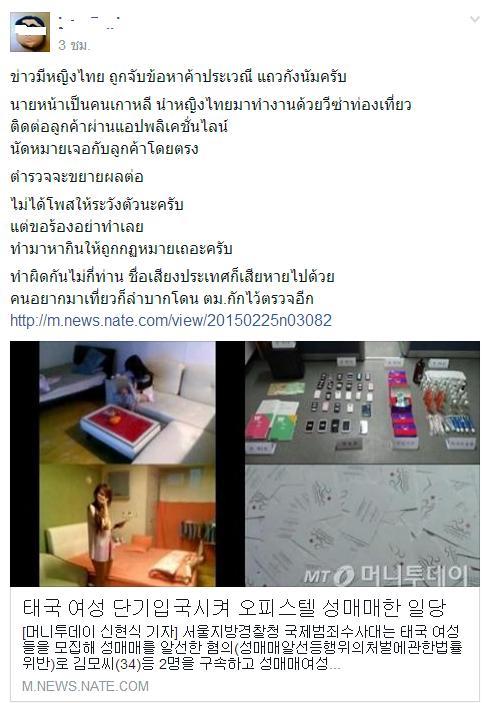 การค้าประเวณีในเกาหลีใต้กลายเป็นเรื่องไม่ได้ทำใครเดือดร้อน คนที่เข้าเกาหลีโดยสุจริตใจเขาเดือดร้อนเพราะพวกคุณเท่าไหร่ไม่รู้ตัวเลยเหรอ