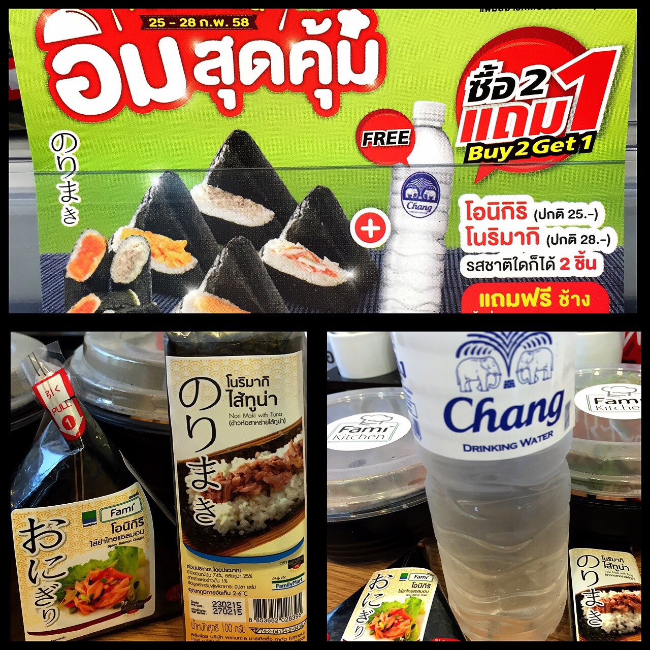 แถมๆ พอดีจะเดินไปซื้อน้ำแล้วเห็นโปรโมชั่น ซื้อข้าวปั้น2อัน ฟรีน้ำดื่มช้าง เลยโดน!