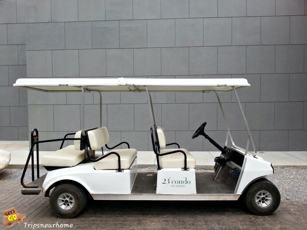 ทางโครงการมีรถกอล์ฟไว้ให้บริการด้วยค่ะ เผื่อจะไปทานอาหารทาง escape ก็ใช้ได้ค่ะ
