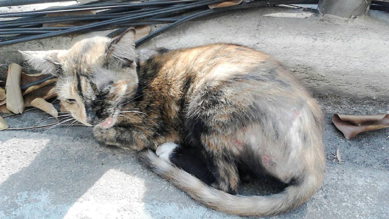 ไม่มีที่หลบแดด หลบร้อน หลบฝน แล้วตอนนี้อากาศก็ร้อนมากๆ น้องก็หลบตามหลืบตามซอกต่างๆแทน