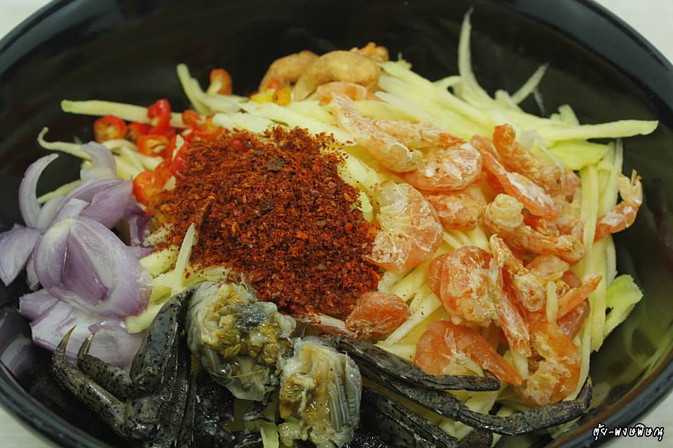 แกงส้มมะละกอกุ้ง กับ ไข่เจียว ครับ ยำมะม่วงปูเค็ม ของแถม