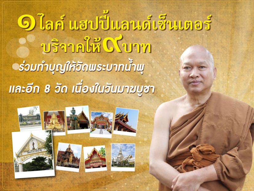 ทำบุญกัน!! กด 1 Like Happyland Center บริจาคให้ 9 บาท ให้กับวัดพระบาทน้ำพุ