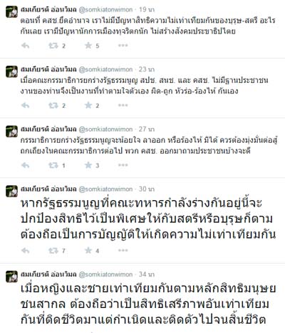 นายสมเกียรติ กล่าวว่า การยกร่างรัฐธรรมนูญนั้น หากมีการกำหนดให้ หญิงและชายเท่าเทียมกันตาม