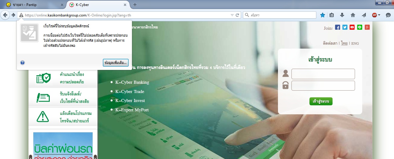 เป็นเพราะ Firefox 36 ยกเลิกการรองรับ cipher ที่เว็บ K Cyber Banking ใช้อยู่ครับ