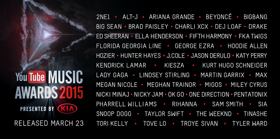 Youtube ประกาศ 50 ศิลปินทั่วโลกที่เป็นผู้ชนะใน 2015 Youtube Music Awards และ BIG BANG กับ 2NE1 เป็นศิลปินเคป็อบเพียงสองวงที่เป็นสองในผู้ชนะ