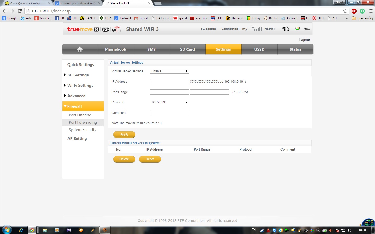 สอบถามหน่อยครับเกี่ยวกับ เราเตอร์เน็ต True ZTE F668 จะ Forward Port