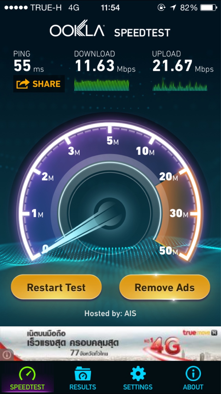 Speedtest 4G LTE By Truemove H (พื้นที่ใหม่) ถนนระนอง 1 เขตดุสิต