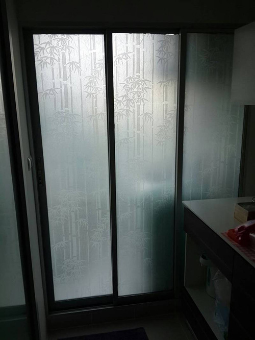 งานต่อไป กระจกตรงห้องครัวค่ะ เนื่องจากห้องอยู่ตรงกับฟิตเนสพอดี กระจกก็ใสมาก เราเลยไปซื้อสติ๊กเกอร์มาติด เหมือนเดิมจร้า ติดเอง เบี้ยวบ้างมีฟองอากาศบ้าง แต่ก็ได้อยู่นะค่ะ (ติดสติ๊กเกอร์ครั้งแรกในชีวิต)