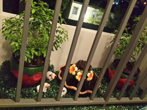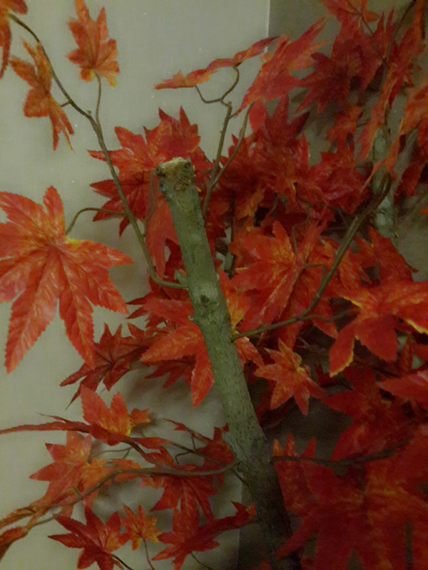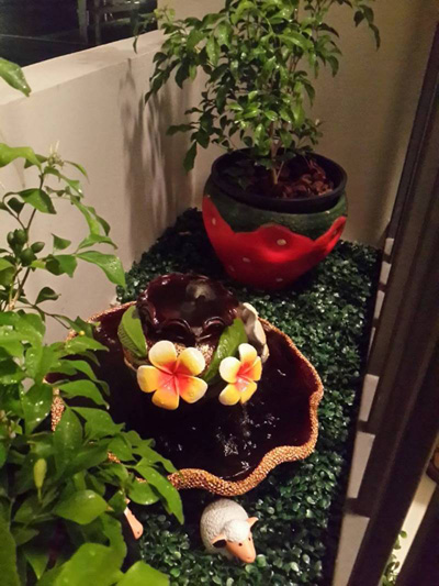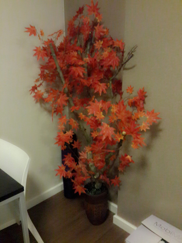 ห้องเสร็จแล้ว เข้าอยู่ได้ แต่เรายังอยากได้สวนน้อย ๆ ที่ระเบียงค่ะ อยากได้ต้นไม้มาไว้ในห้องด้วย ไปดูราคาต้นไม้ปลอมที่เป็นต้นในกระถาง เจอต้นละ 1,200 ถอยหลังเลยค่ะ ไปยืนมอง ๆ ว่าเขาทำยังไง สุดท้ายก็จบด้วยการปิ๊งไอเดีย ให้พี่ชายตัดกิ่งไม้ เอาสว่านเจาะ แล้วก็ไปจตุจักร ซื้อกิ่งเมเปิ้ลมาเสียบ ๆ หยอดกาว กระถางเรามีอยู่แล้วค่ะ หินกับหญ้าปลอมก็เหลือจากทำสวนที่ระเบียง งบประมาณต้นไม้ต้นนี้ 320 บาท หน้าตาก็ออกมาเป็นแบบนี้จร้า