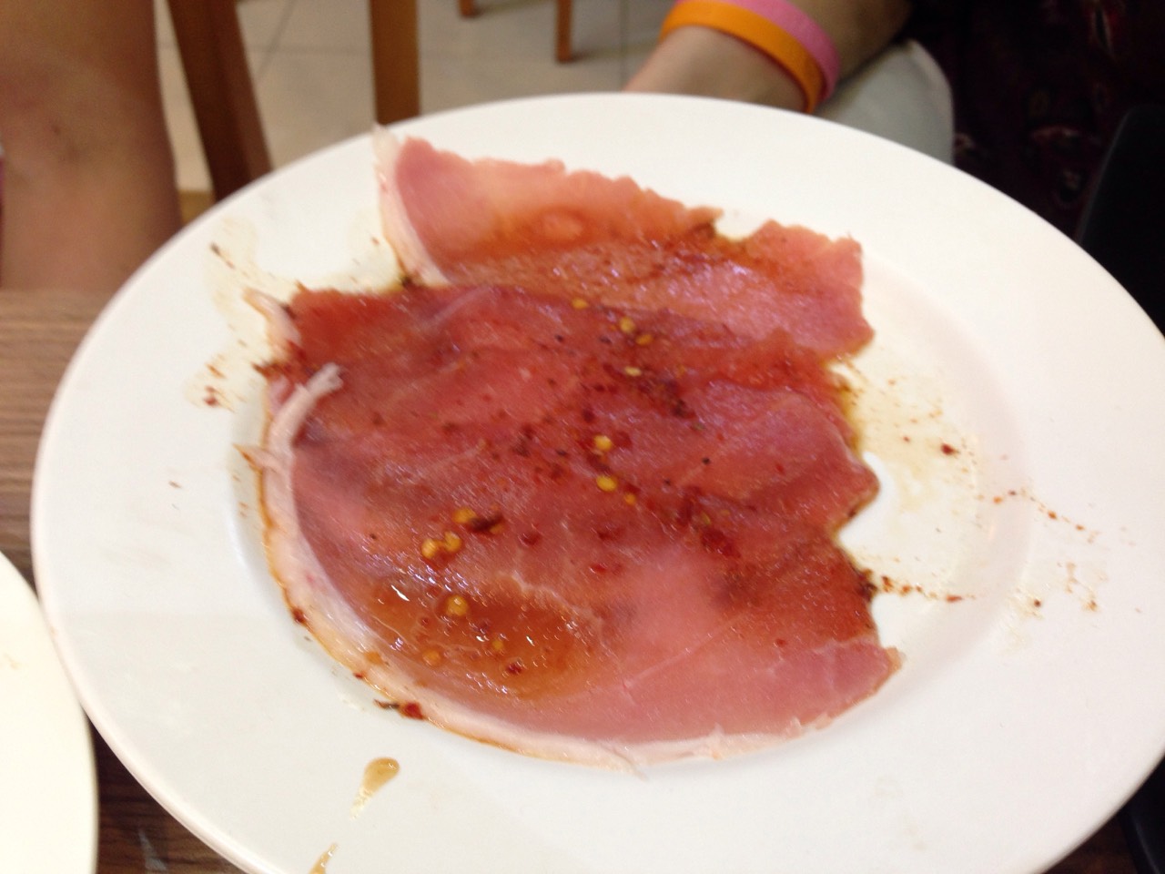 แต่พอมาดูดีดี จานนี้แหละคือปลาแซลม่อน!!! แต่สภาพมานี่เหมือนกับ ปลาเช็ดตาม่อน เละๆ เหมือนอาหารแมวชัดๆ