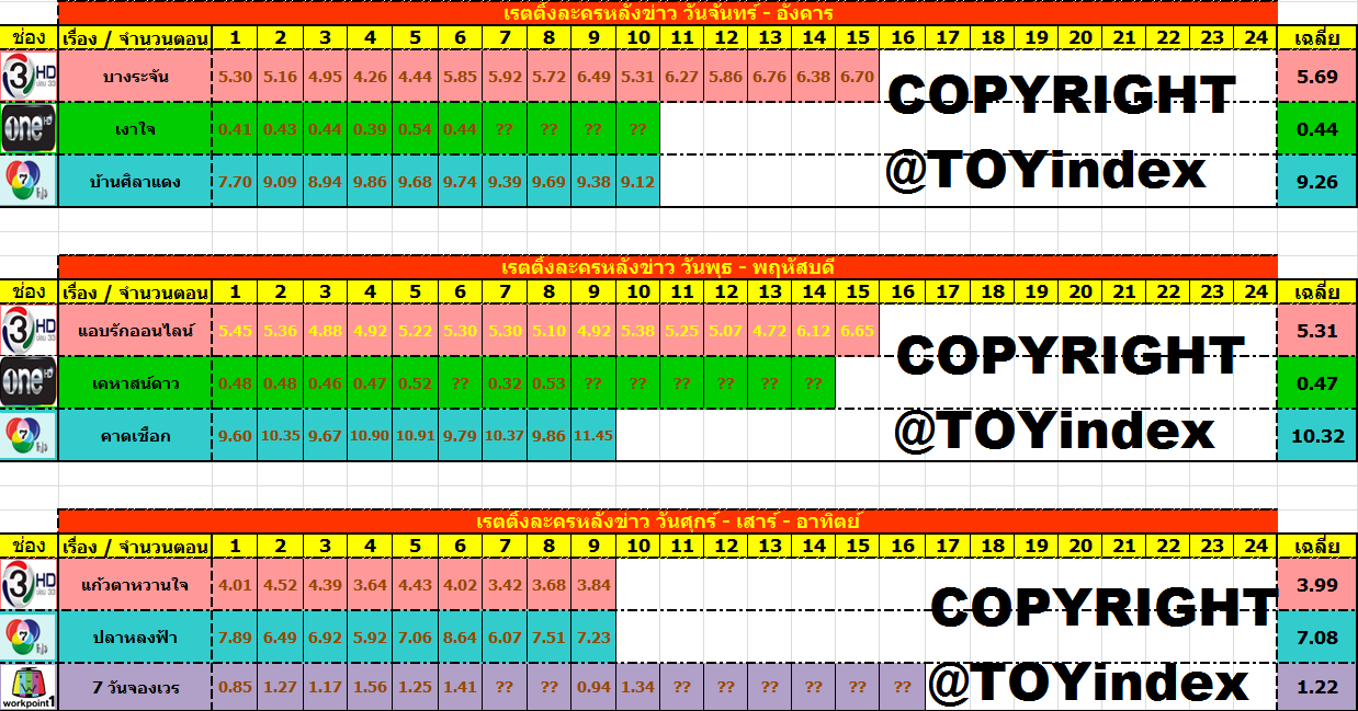 ข้อมูลทั้งหมดเครดิตจาก AGB Nielsen /// ทวิตเตอร์ ของคุณ Buntanik Boonsin @KungBuntaniK /// Pantip @ตุ๊กตาสีรุ้ง ### โปรดใช้วิจารณญาณในการอ่าน และโปรดอย่าทะเลาะกันในกระทู้นี้ ###