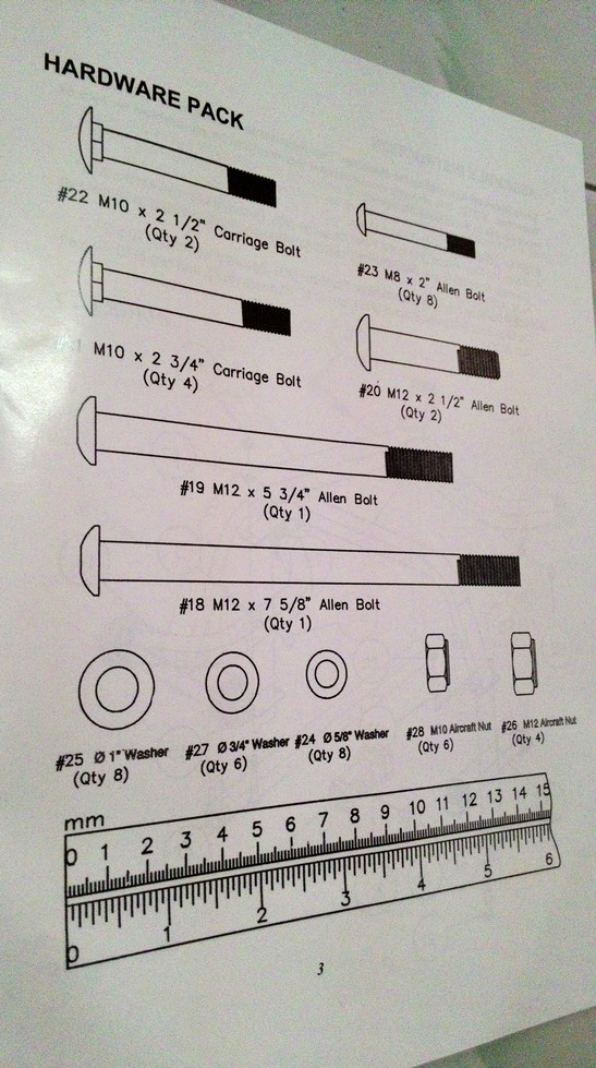 ในคู่มือแจกแจงตัวยึดแบบต่างๆ ว่าเป็นหมายเลขอะไร มีอยู่กี่ชิ้น