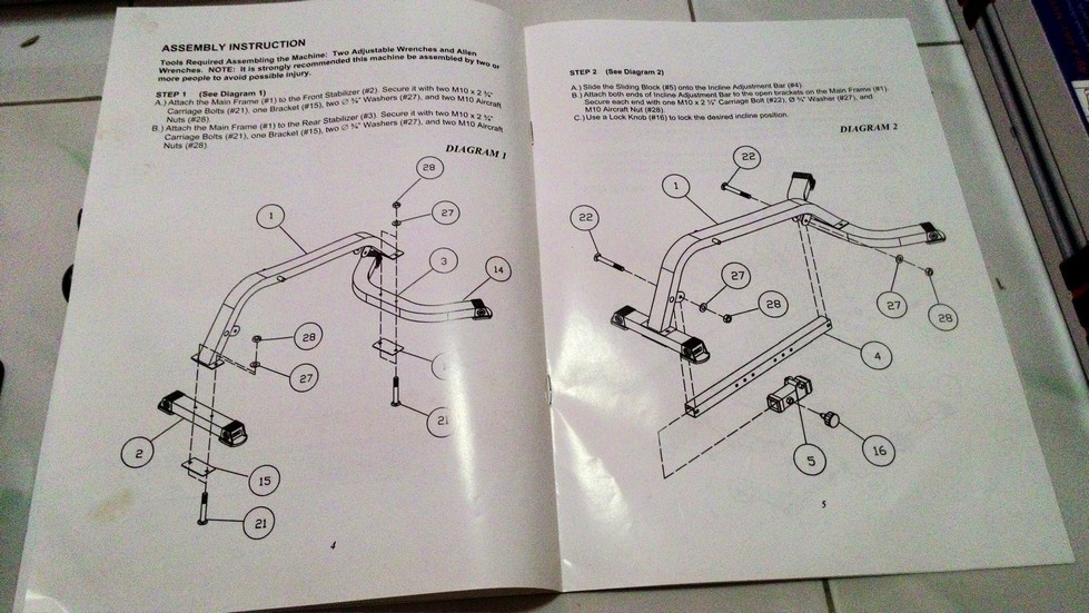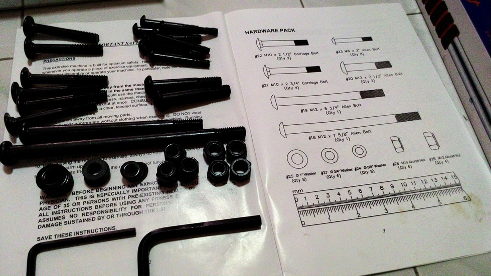 คู่มือประกอบม้าดัมเบลนี้จะชี้แจงไว้เลยว่าสกรูหมายเลขไหน ตรงกับแหวนและน็อตหมายเลขไหน ค่อยๆประกอบตามไปได้ไม่ยากครับ