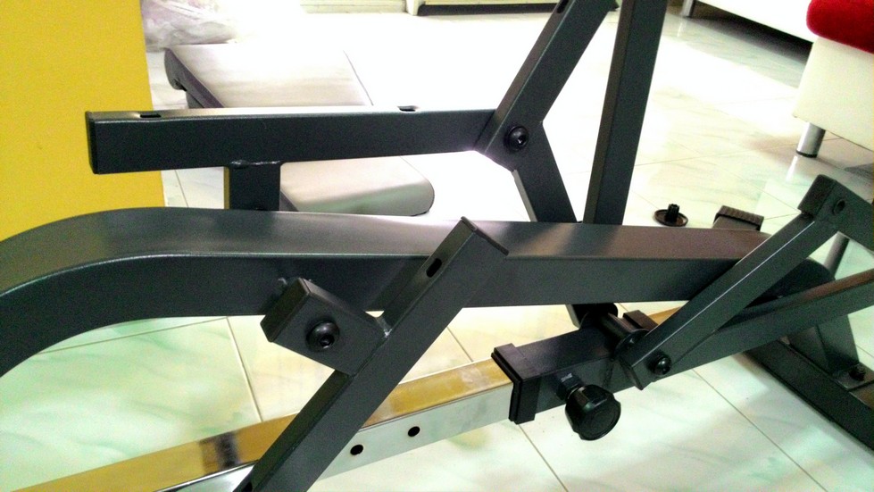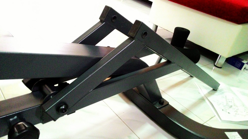 อันดับแรก เราก็ประกอบส่วนฐานก่อน แล้วใส่เหล็กขาวซึ่งเป็นตัวเปลี่ยนรู – ปรับเบาะเอียง เข้าไป (การขันน็อต ให้ขันไว้หลวมๆก่อน พอแน่ใจแล้วค่อยย้ำให้แน่น ใช้ประแจแหวน ทั่วไปให้เบอร์มันตรงกันครับ ผมมีแต่คีมล๊อก หัวน็อตจึงถลอกนิดหน่อย)