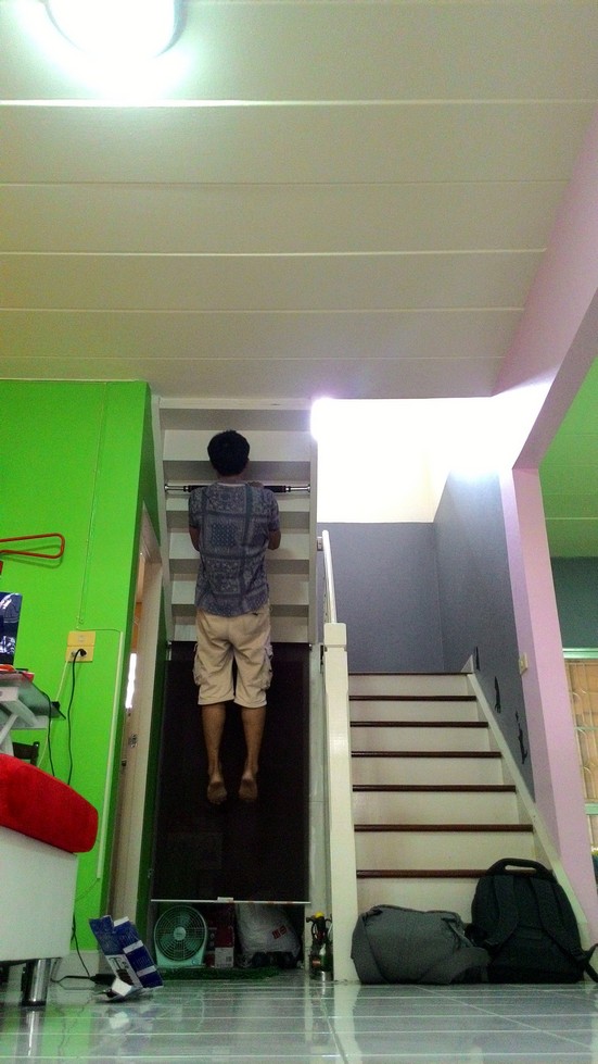 อันนี้บาร์ดึงข้อ ผมสั่งซื้อมาด้วยเพราะปัจจุบันดึงกับบันไดชั้นสอง กลัวจะตกลงมาพิการสักวัน (เด็กๆมิควรทำตามนะฮะ)